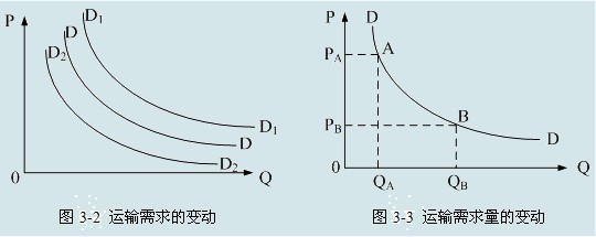 运输需求曲线是除运价以外的其他影响因素都不变的情况下,运输需求量与运输价格之间的关系曲线。