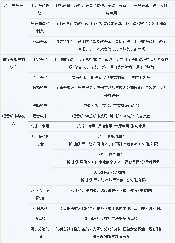 支出主要表现为:运输项目总投资、经营成本和税金等。