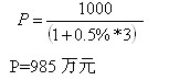 例:一张为期3个月的1000万元票据,市场利率为0.5%(不计复利),该票据交易价格: