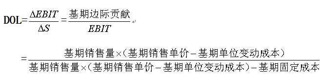 经营杠杆以其固定经营成本的存在为杠杆作用支点,也就是说,当固定经营成本存在时,销售收入的变化会被杠杆作用放大,从而导致息税前利润的更大变化,这种缘于固定经营成本的乘数效应被称之为经营杠杆系数( DOL )。