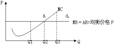 短期边际成本与边际收益曲线交于A点,A点左侧边际成本小于边际收益,企业会提高产量,增加利润。A点右侧,边际成本大于边际收益,企业会减少产量,以增加利润或减少亏损,在A点边际成本=边际收益,此时企业既不能增加产量也不能减少产量,即在A点上实现了利润最大化.