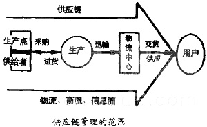 供应链的含义是从采购开始经过生产、分配、销售最后到达用户,这不是孤立的行为,而是一定流量的环环相扣的“链”,物流活动是受这一供应链决定的制约的,例如效益观和库存观,供应链上各环节都有不同的利益和观念,各功能之间存在天生的冲突也是难以避免的,但是由于现代管理和现代技术可以提供总体的信息使各个链节共享,因此可大大扩展视野,使之能从总体上管理整个“链”而不是如同过去那样只管理各链节之间的“接口”,或只管其中一部分链节。供应链管理实际上就是把物流和企业全部活动做为一个统一的过程来管理。