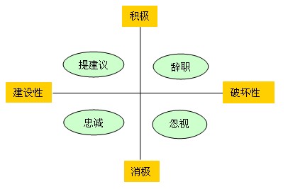3.忠诚(建设性和消极的):虽然对工作不满,但仍然尽力维护组织的利益和形象,