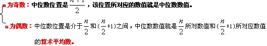 根据未分组数据计算中位数时,要先对数据进行排序,然后确定中位数的位置,n为数据的个数,其公式为: