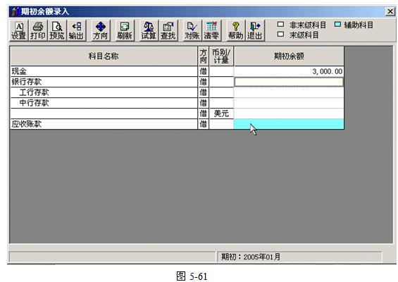 (二)辅助科目期初余额录入