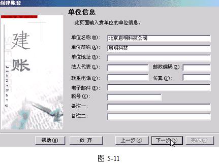 单位信息用于记录本单位的基本信息。主要包括单位名称、单位地址、法人代表、邮政编码、电话、传真、电子邮件和税号等信息。如:单位名称:北京启明科技公司;单位简称:启明科技。