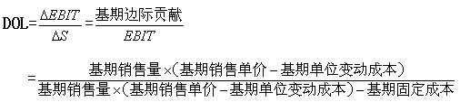 经营杠杆以其固定经营成本的存在为杠杆作用支点,也就是说,当固定经营成本存在时,销售收入的变化会被杠杆作用放大,从而导致息税前利润的更大变化,这种缘于固定经营成本的乘数效应被称之为经营杠杆系数( DOL )。