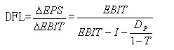 财务杠杆以其固定的资本成本为支点,当固定的资本成本存在时,息税前利润的变化会被财务杠杆所放大,从而导致每股收益的更大变化,这种缘于固定资本成本的乘数效应被称为财务杠杆系数( DFL )。