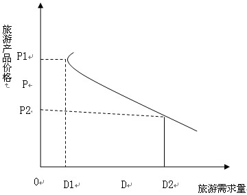 旅游需求曲线是一条自左上方向右下方倾斜、斜率为负的曲线。说明随着产品价格上涨,旅游需求量下降,呈反比关系。