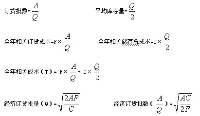 A ――全年需要量 Q――每批订货量 F――每批订货成本