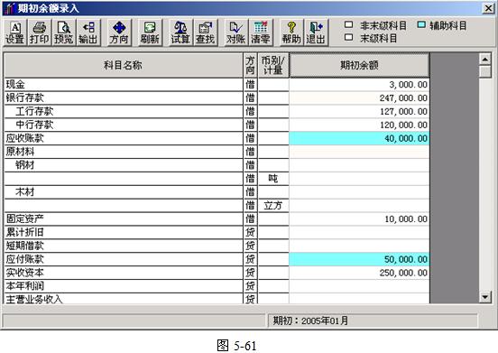 期初余额的录入分两部分:总账期初余额录入、辅助核算科目期初余额录入。