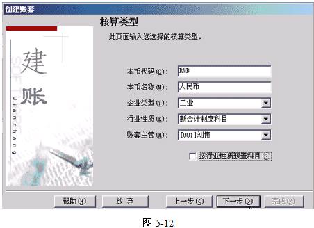 5.行业性质:系统按照所选择的行业性质预置科目,必须选择输入。