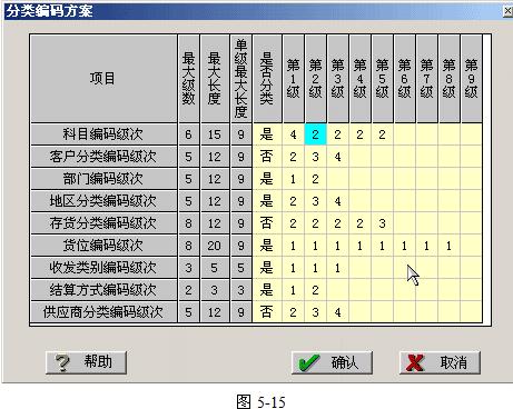 编码方案是指设置编码的级次方案,这里采用群码方案,这是一种分段组合编码,每一段有固定的位数。编码规则是指分类编码共分几段,每段有几位。一级至最底层的段数称为级次,每级(或每段)的编码位数称为级长。编码总级长为每级编码级长之和。