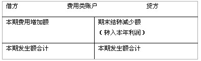 费用(成本):借方增加,贷方减少,一般无余额