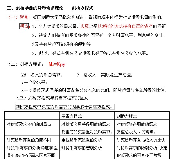 2013年经济师《初级金融》预习1(3):剑桥方程式