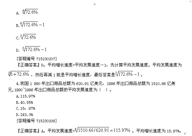 1.(2005、2008年)平均增长速度与平均发展速度的数量关系是( )。