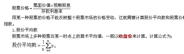 股票价格是一个时点值,通常以收盘价作为该种股票当天的价格。正常情况下,股票价格通常与两个直接因素相关:一是预期股息,二是银行存款利息率。股票价格的高低与预期股息成正比,与银行存款利息率成反比。因此,股票价格的形成可以用下列公式表示: