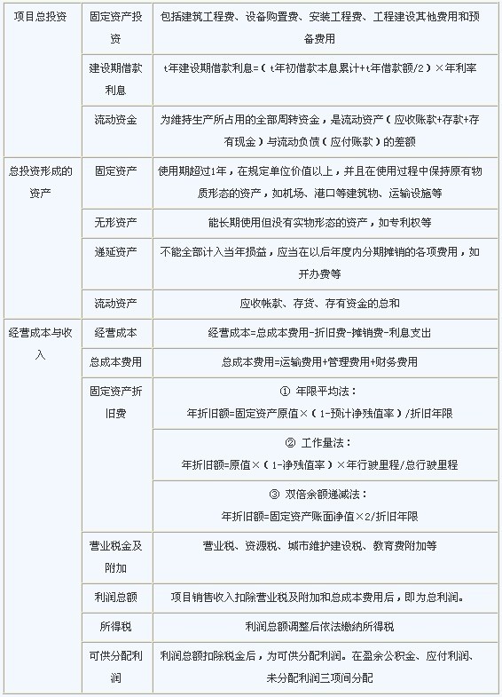 支出主要表现为:运输项目总投资、经营成本和税金等。