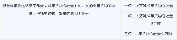 一级货运站:年换算货物吞吐量600×103t及以上。