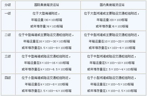 (3)集装箱货运站的站级划分:分为国内和国际两部分。