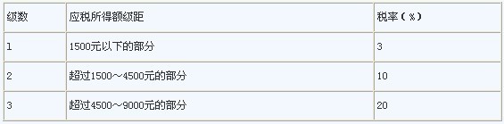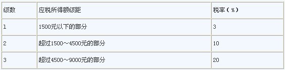 6.在下列三级超额累进税率下,若某人的应税所得为8000元,则应纳税额为( )。