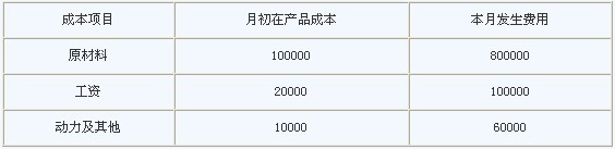 『答案解析』关键点:原材料一次性投入。月末在产品原材料费用=(100000+800000)/(800+100+200)×(100+200)=245454元。