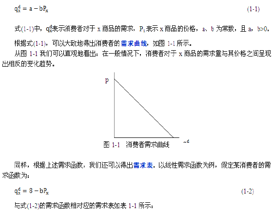 如果假定其他条件不变,而只有消费者所购买的商品的价格发生变化,那么一元需求函数可以简单地表示为: