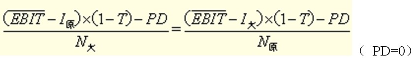 能使得上述条件公式成立的EBIT为每股盈余无差别点EBIT。