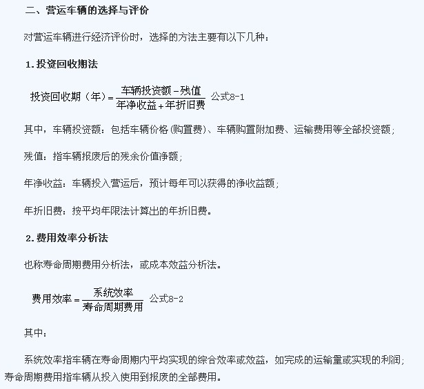 2012经济师《中级公路运输》预习笔记:第八章第1节