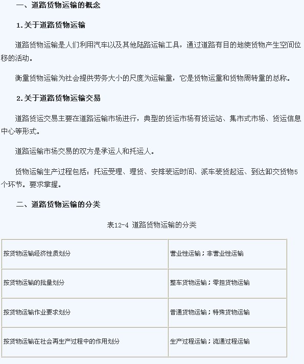 2012经济师《中级公路运输》预习笔记:第12章第2节