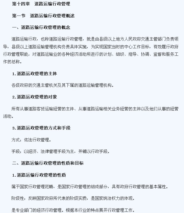 2012经济师《中级公路运输》预习笔记:第14章第1节