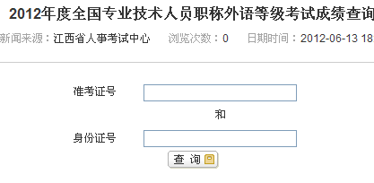 环球网校(www.hqwx.com)消息,从江西人事考试中心获悉,2012年江西地区职称日语考试成绩于6月18日开始查询,成绩查询地址如下: