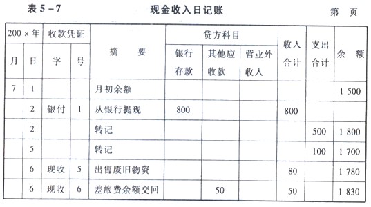 (二)特种日记账的格式和登记方法