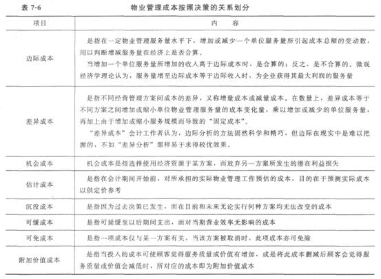物业管理中的成本及其分类之物业管理成本按照决策的关系划分