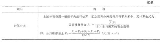 成本估算方法之专项维修资金
