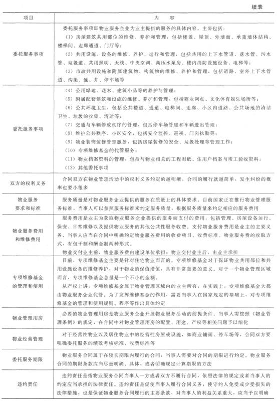 物业服务合同之物业服务合同的主要内容