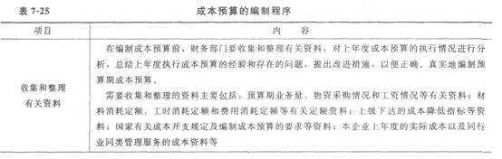 成本预算之成本预算的编制程序