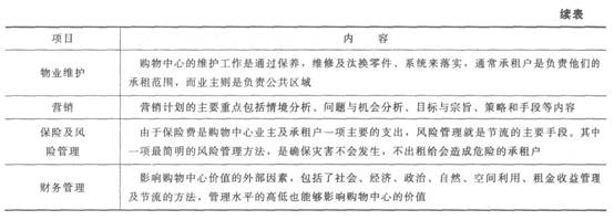 零售商业物业及其分类之零售商业物业经营管理的内容