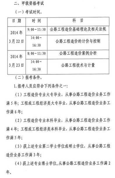 - 2017年公路造价师考试时间2014-11-18