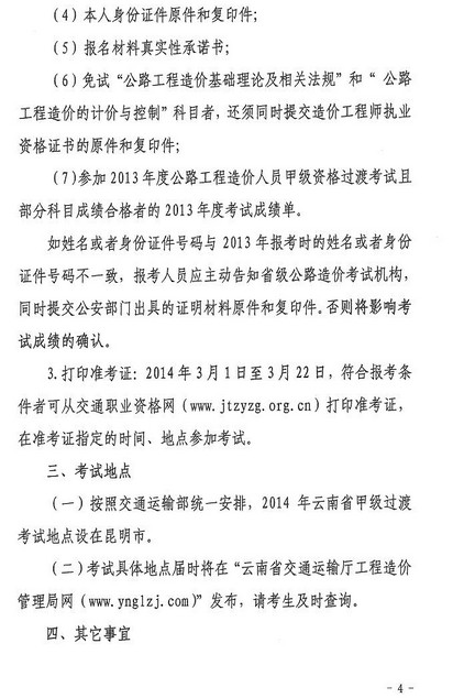 云南2014年公路造价人员甲级过渡考试通知