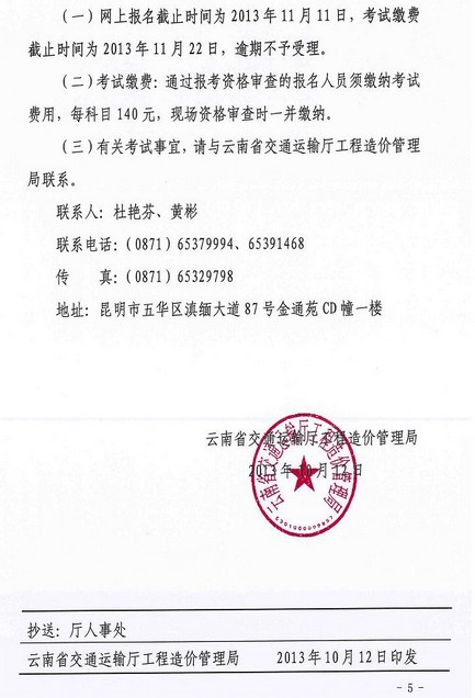 摘要 云南2014年公路造价人员甲级过渡考试通知