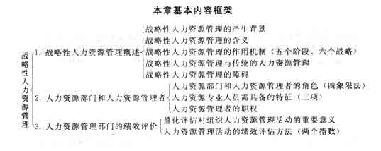 本章主要讲述战略性人力资源管理的相关知识。重点是战略性人力资源管理产生的必备条件、投资的决定因素、作用机制、人力资源工作者的角色以及人力资源有效性指数与人力资源指数。