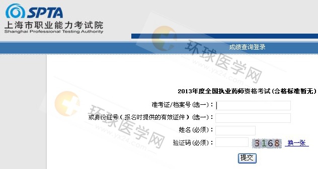 2013年度上海执业药师资格考试成绩查询开始,环球网校医学考试网第一时间发布执业药师考试成绩查询信息。