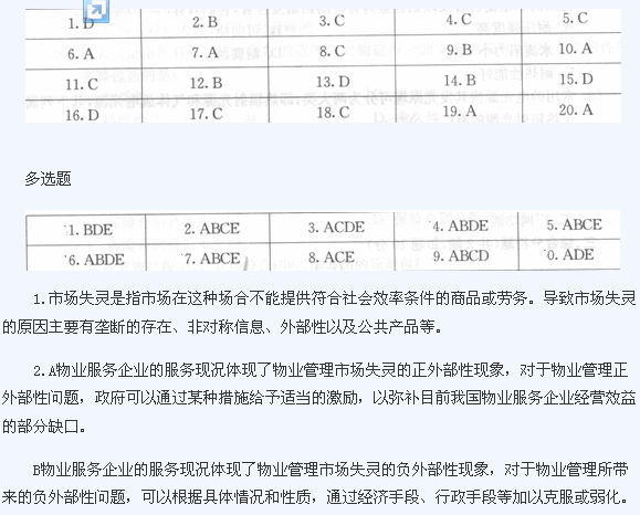 2.A、B两个物业服务企业的服务现况分别体现了物业管理市场失灵什么现象?分别说明政府应如何进行调节。