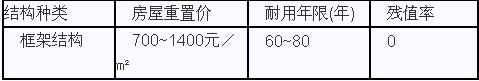 (1)计算房屋重置价所评估房屋为一栋四层商业楼,框架结构,1985年竣工。根据XXXX市房产管理局提供的资料,各类房屋的重置价格和耐用年限及残值率见表4―11.