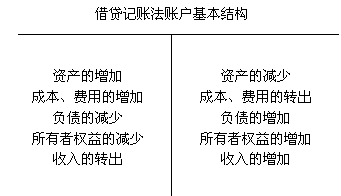 如果采取最简单的形式,一个账户仅仅有三个要素:(1)标题(会计科目);(2)左方栏,称为借方;(3)右方栏,称为贷方。这种形式的账户称为T型(或丁字)账户。