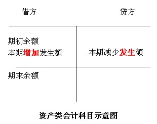 资产类会计科目的基本结构是资产的增加额记入会计科目的借方,资产的减少额记入会计科目的贷方,期末若有余额,一般在借方,表示资产的期末实有数额。资产类会计科目的基本结构如图所示。