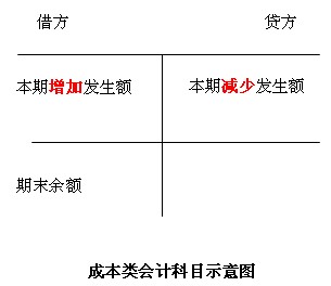 成本类会计科目的基本结构与资产类会计科目的基本结构基本相同。即当成本增加时,将其数额登记在会计科目的借方,当成本减少或转销时,将其数额登记在会计科目的贷方,期末若有余额时,其余额在借方。