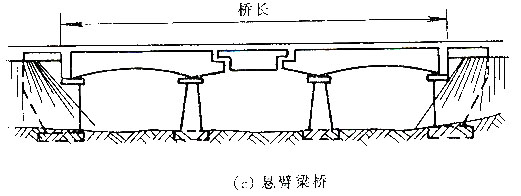 悬臂梁桥相当于简支梁桥的梁体越过其支点向一端或两端延长所形成的梁式桥结构。其结构特点是悬臂跨与挂孔跨交替布置,通常为奇数跨布置。