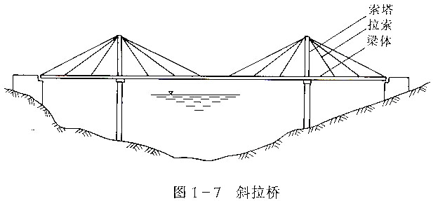 斜拉桥是典型的悬索结构和梁式结构组合的,由主梁、拉索及索塔组成的组合结构体系。这里仅就混凝土斜拉桥介绍其构造特点。